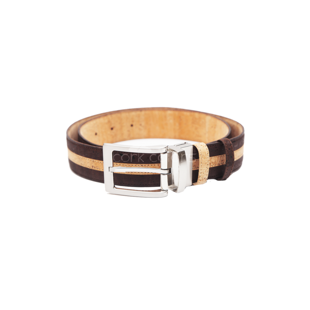 Show off your sense of style with our sleek cork belt, available in four stunning colors: brown with a light brown stripe, light brown, light brown with a blue stripe, and blue. This standard-width belt has a smooth, flat texture that feels comfortable against your skin, and the rectangular stainless steel clasp