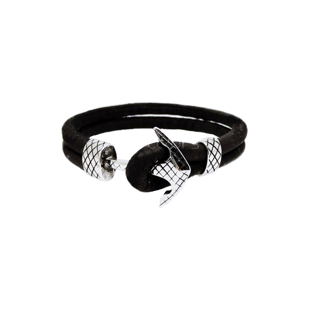 100% Cork and stainless steel.