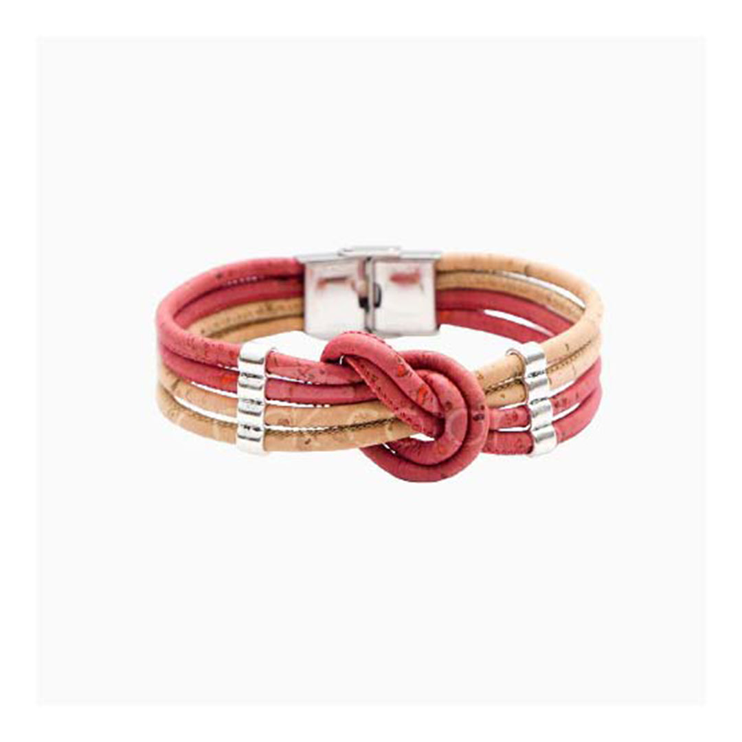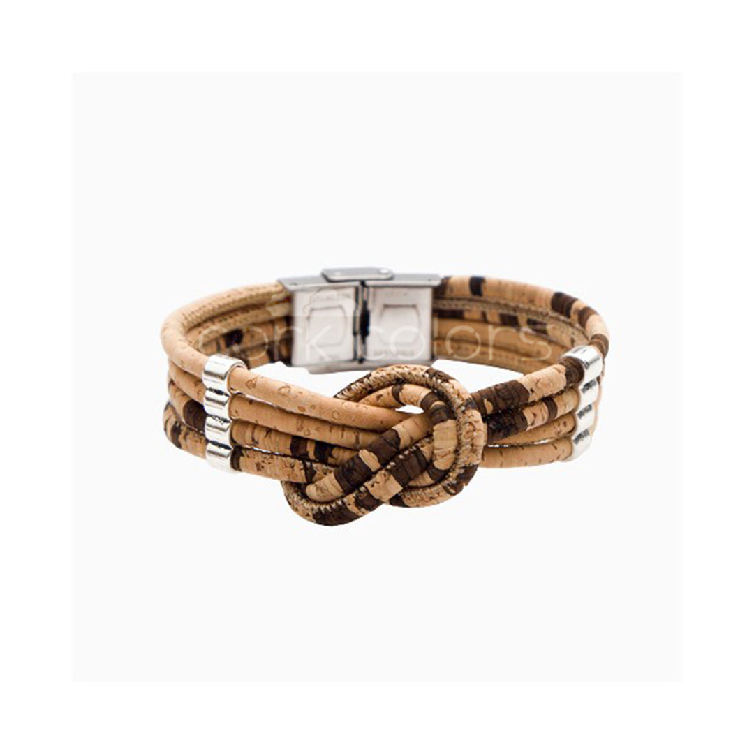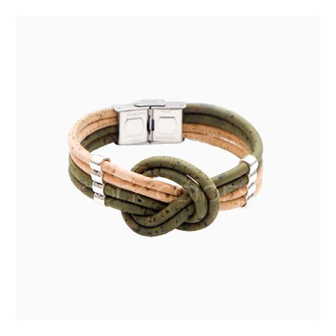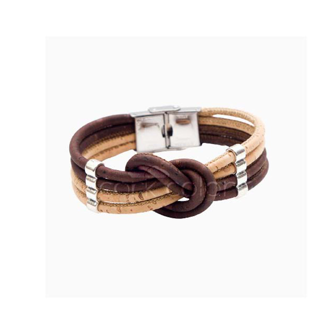100% Cork and stainless steel.