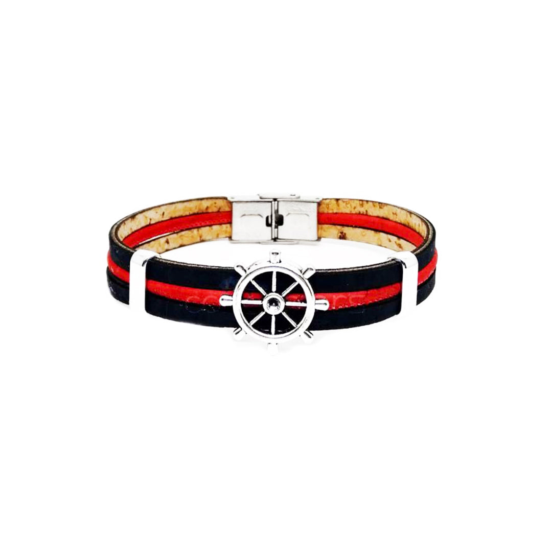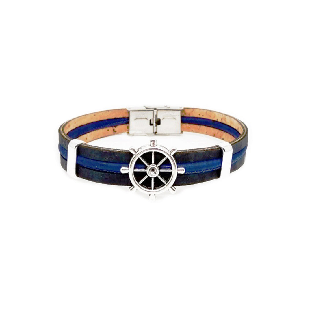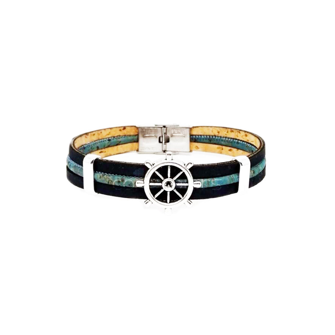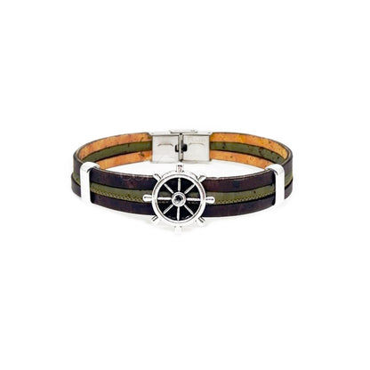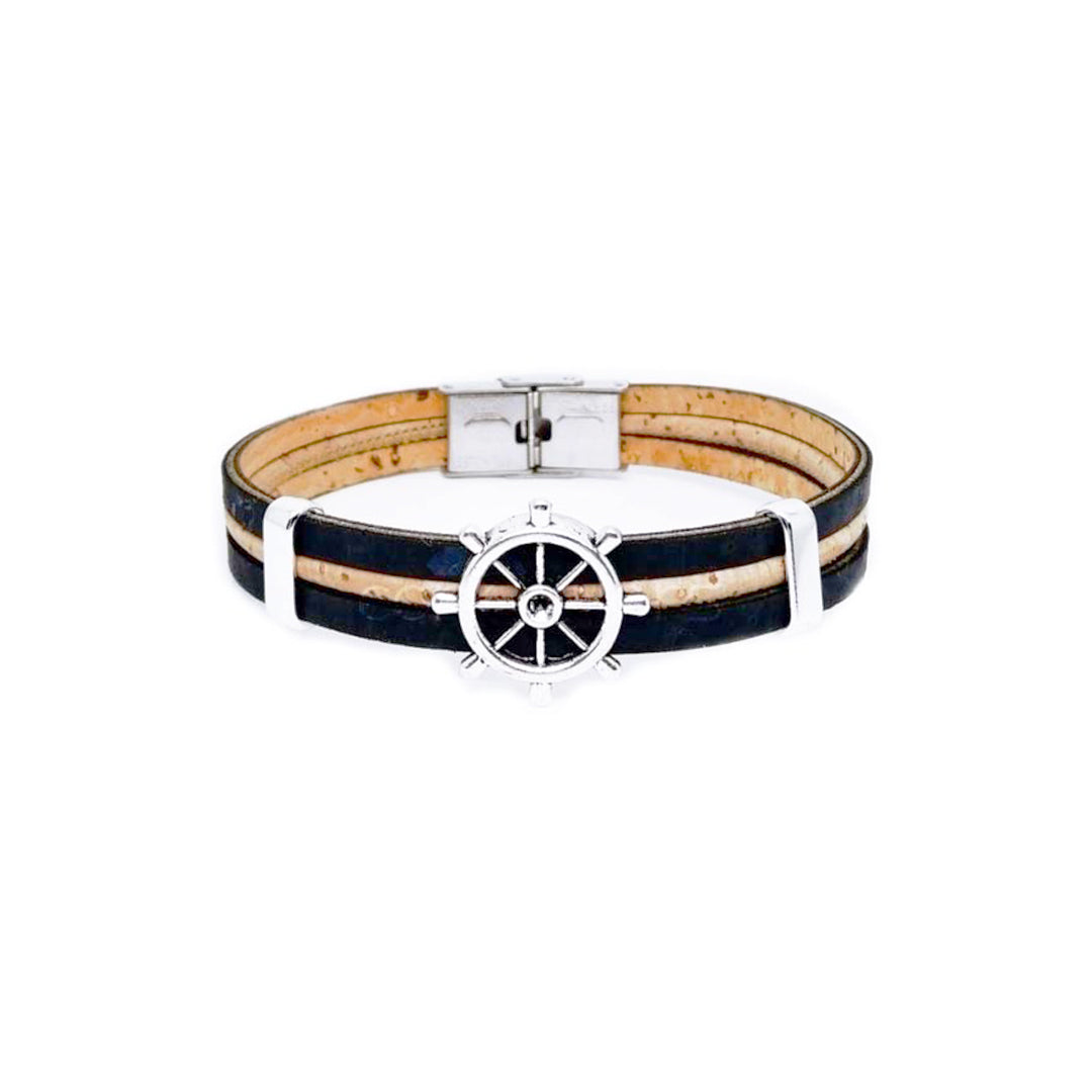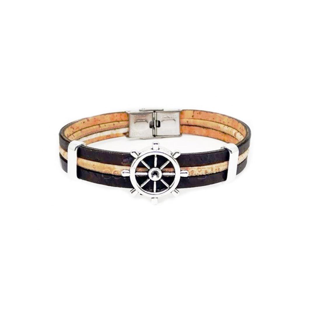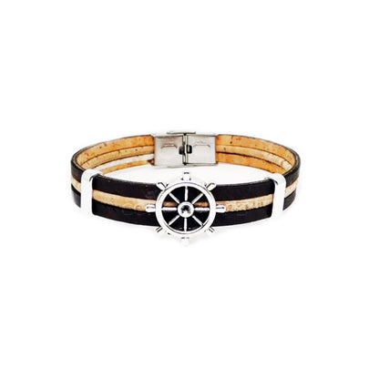 100% Cork and stainless steel.
