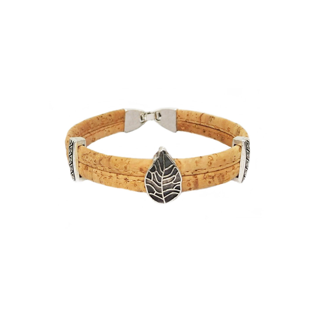 100% Cork and stainless steel.