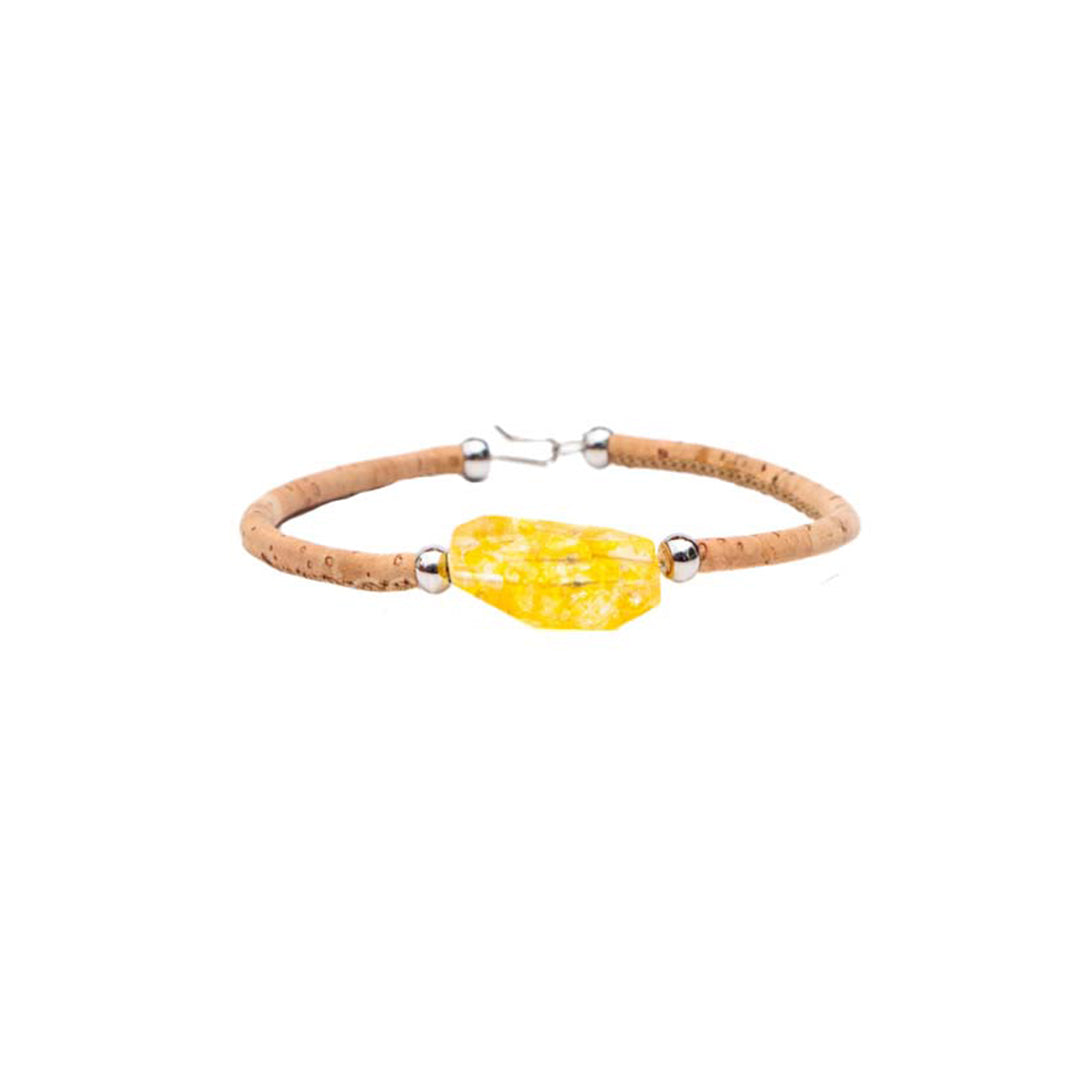 100% Cork and stainless steel.