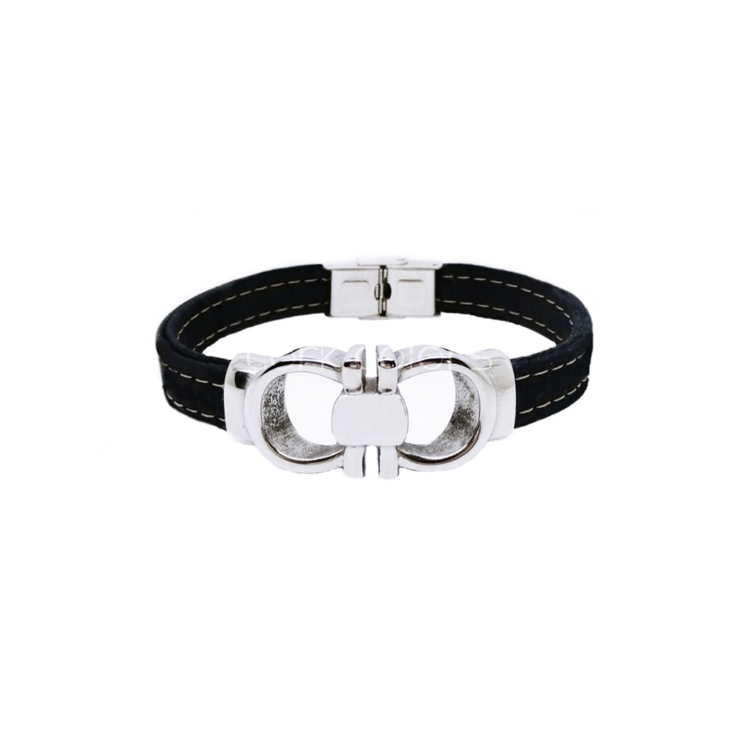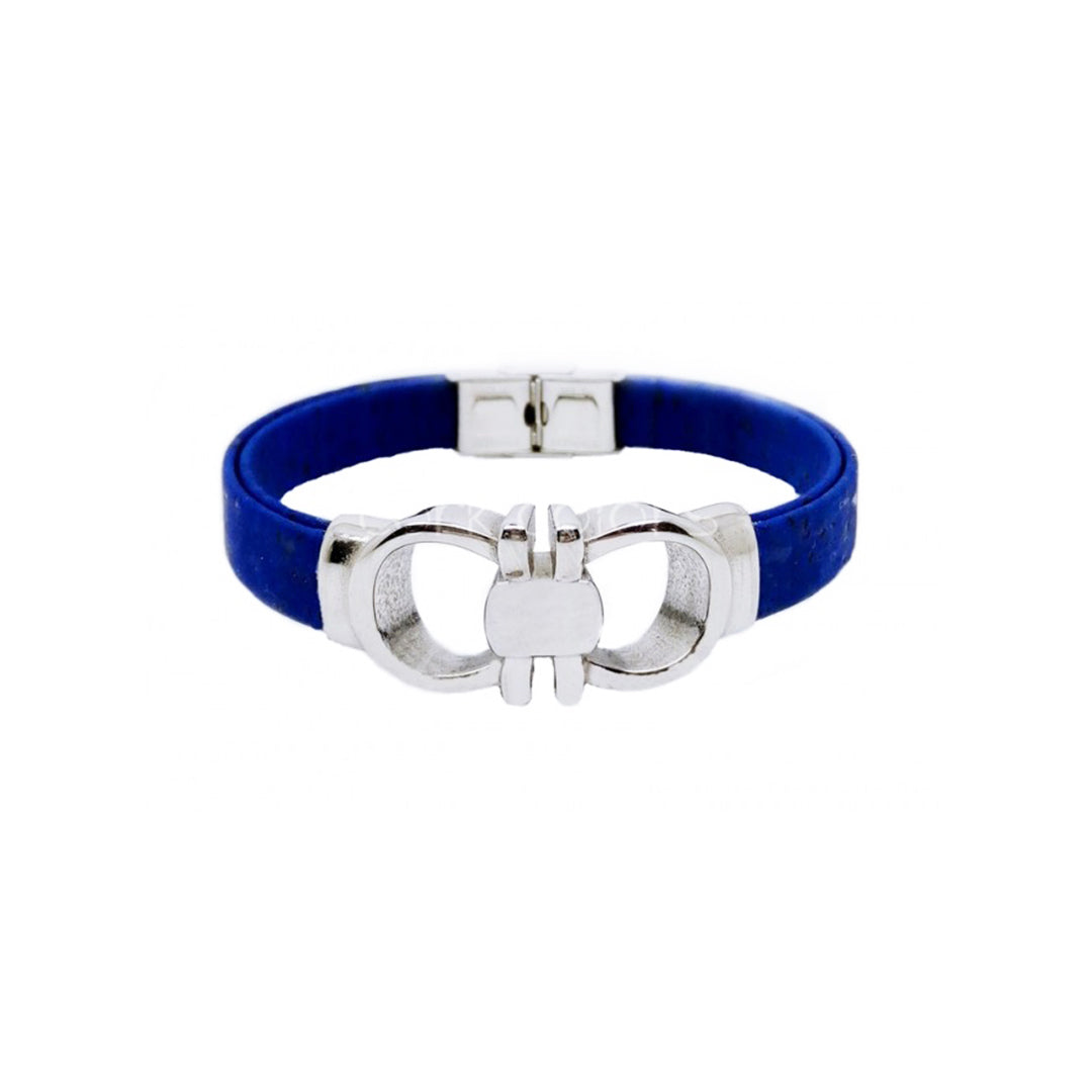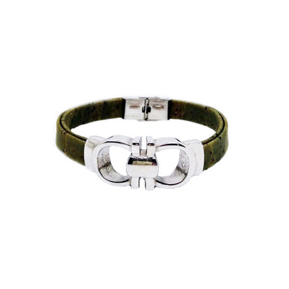 100% Cork and stainless steel.