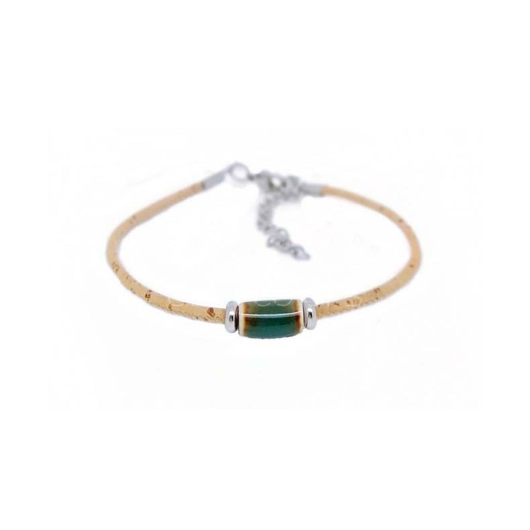 100% Cork and stainless steel.